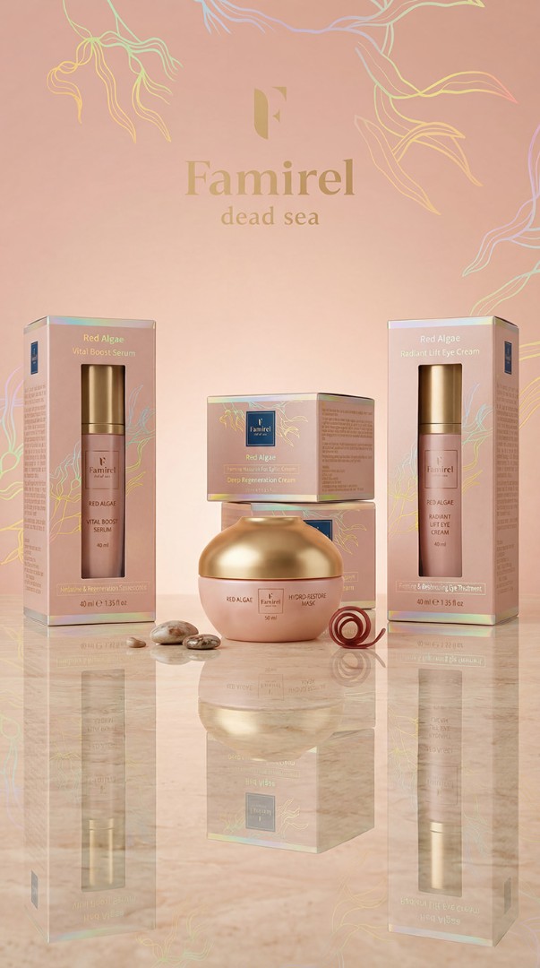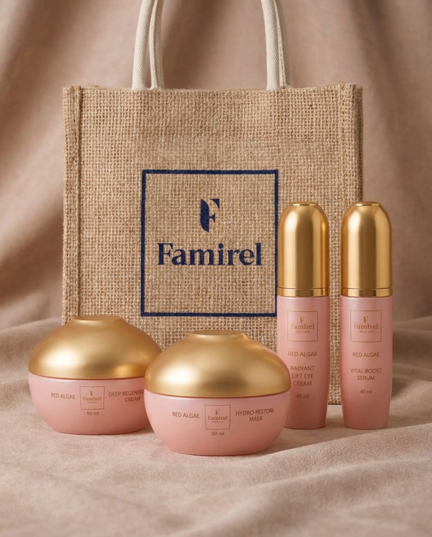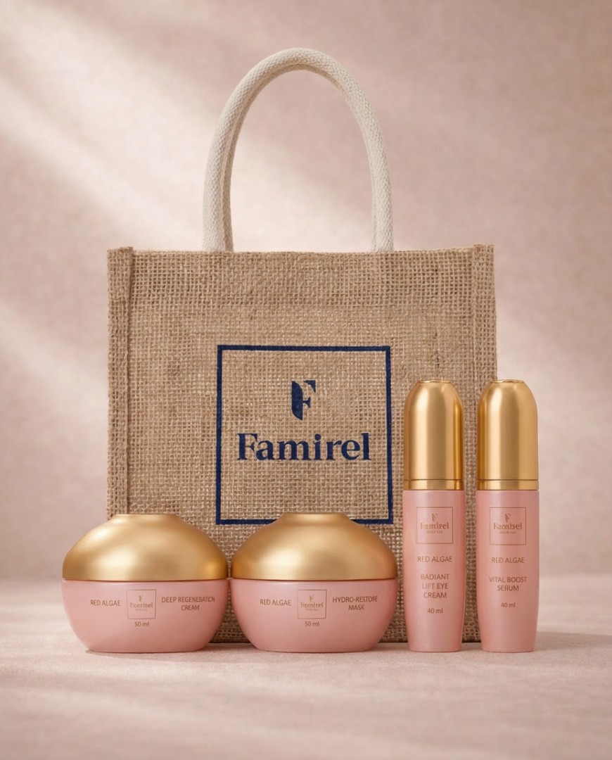 מארז RED ALGAE של FAMIREL הוא מארז טיפוח מקיף ומפנק, שנבנה כדי להעניק לעור הפנים שגרת טיפול שלמה המבוססת על לחות עמוקה, הגנה, חידוש ושיקום מראה העור. הסדרה משלבת רכיבים מובילים כמו תמצית אצות אדומות, ניאצינאמיד, ובחלק מהמוצרים גם חומצה היאלורונית, ליצירת אפקט מצטבר של עור שנראה רענן יותר, חלק יותר, גמיש יותר וקורן יותר.