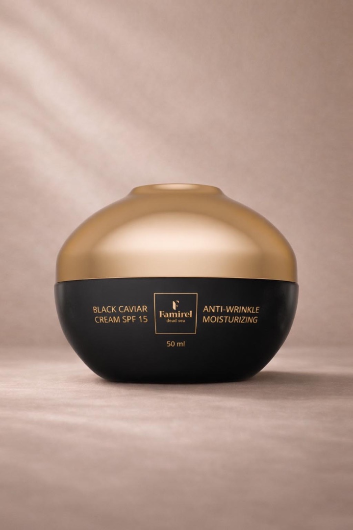 קרם יום לחות נגד קמטים עם תמצית קוויאר שחור ומקדם הגנה SPF15 FAMIREL