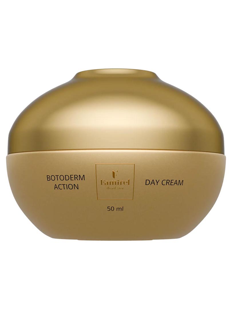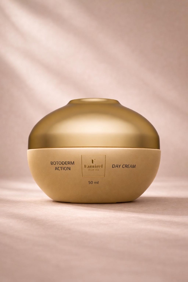סדרת BOTODERM ACTION מיועדת לטיפוח מקיף של העור ומספקת לחות, הזנה, שיקום והגנה. מרכיבים פעילים ייחודיים כגון אצטיל-הקספפטיד 8-, ויטמין A ושמנים טבעיים מסייעים בהפחתת קמטים ובהגברת האלסטיות של העור ומגנים עליו מפני גורמים סביבתיים שליליים.