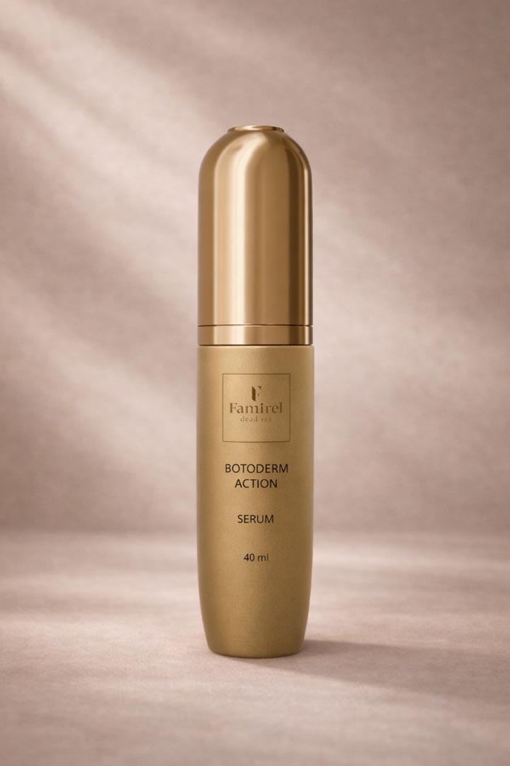 סדרת BOTODERM ACTION מיועדת לטיפוח מקיף של העור ומספקת לחות, הזנה, שיקום והגנה. מרכיבים פעילים ייחודיים כגון אצטיל-הקספפטיד 8-, ויטמין A ושמנים טבעיים מסייעים בהפחתת קמטים ובהגברת האלסטיות של העור ומגנים עליו מפני גורמים סביבתיים שליליים.