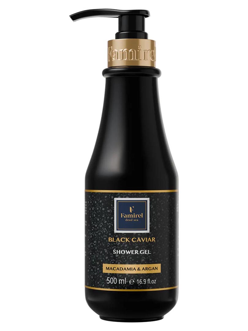 ג׳ל רחצה עם תמצית קוויאר שחור שמן מקדמיה ושמן ארגן FAMIREL