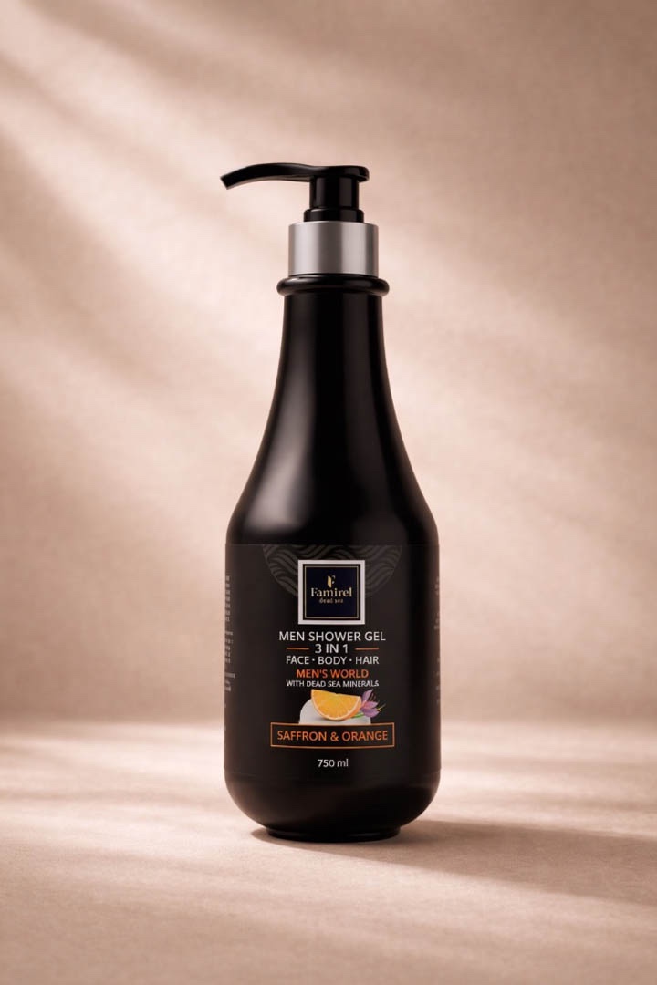 ג׳ל רחצה משולב 3 ב 1 לגברים לפנים לגוף ולשיער בניחוח זעפרן ותפוז FAMIREL