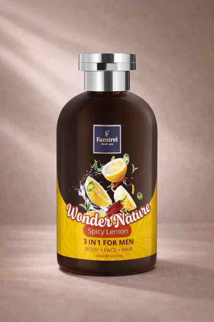 ג׳ל רחצה לגברים 3 ב 1 לגוף לפנים ולשיער בניחוח לימון פיקנטי FAMIREL