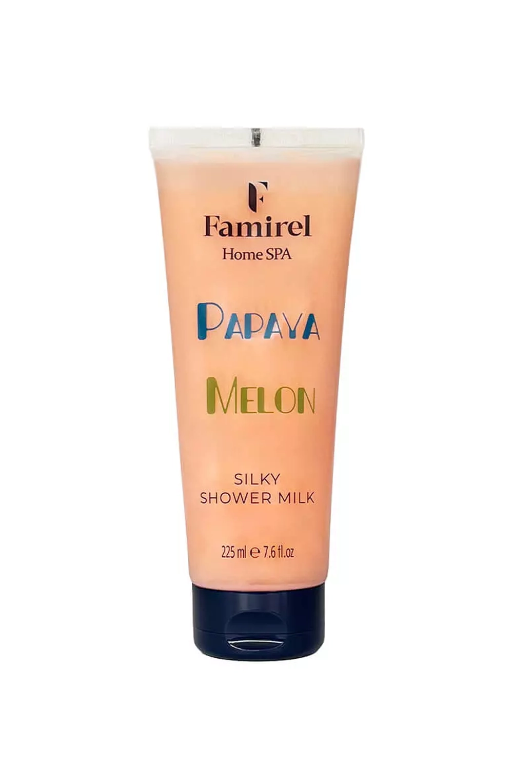 Балующее шелковое молочко для тела с ароматом папайи и дыни для нежного очищения и свежести FAMIREL