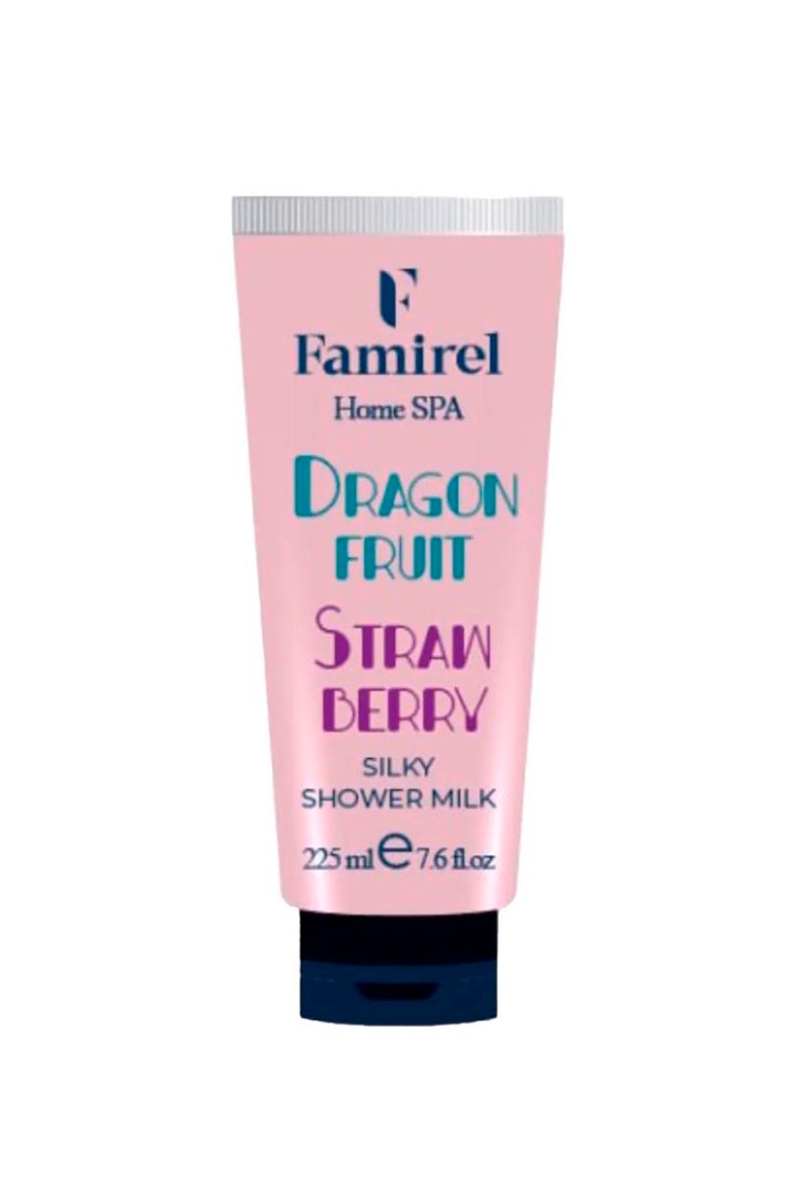 Балующее шелковое молочко для тела с ароматом питахайи и клубники для нежного очищения и свежести FAMIREL