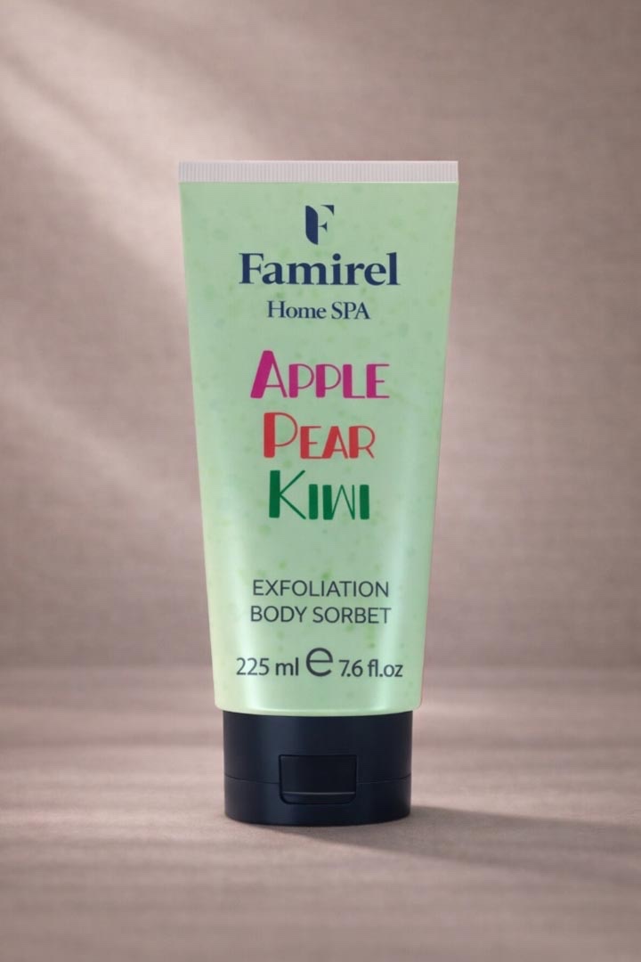 Пилинг-сорбет для тела с ароматом яблока, груши и киви для очищения и разглаживания кожи FAMIREL