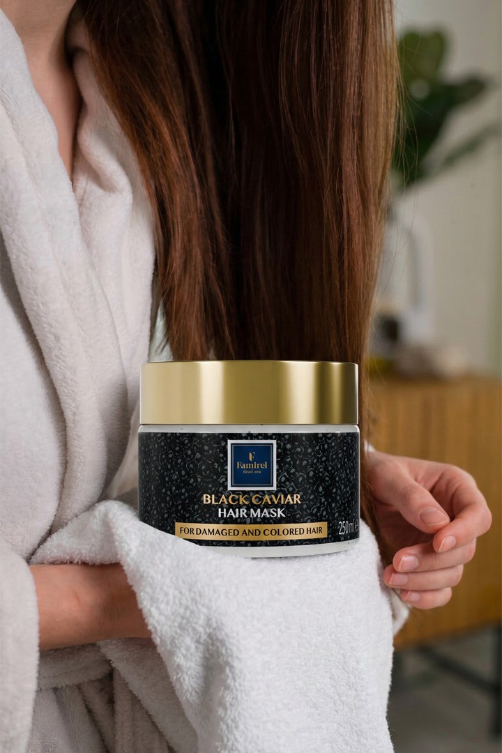 Маска для поврежденных и окрашенных волос с экстрактом черной икры для глубокого восстановления и питания волос FAMIREL